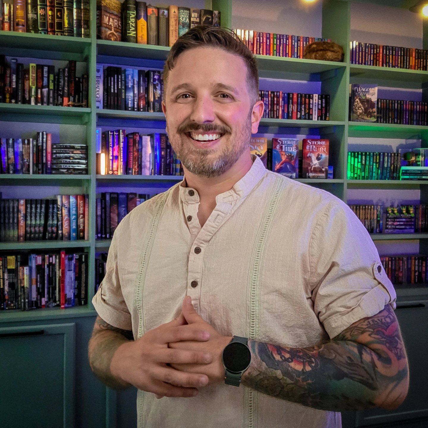 Z.S. Diamanti is the award-winning author of the Stone & Sky trilogy, an epic fantasy adventure, and the Fables of Finlestia cozy fantasy series, which includes Guard in the Garden. In 2025, Zac received the honor of being named Rocky Mountain Fiction Writer of the Year. He went to college forever and has too many pieces of paper on his wall. He is a USAF veteran of Operation Enduring Freedom and worked in ministry for over 10 years. He and his wife live in Colorado with their four children, where they enjoy hikes and tabletop games.